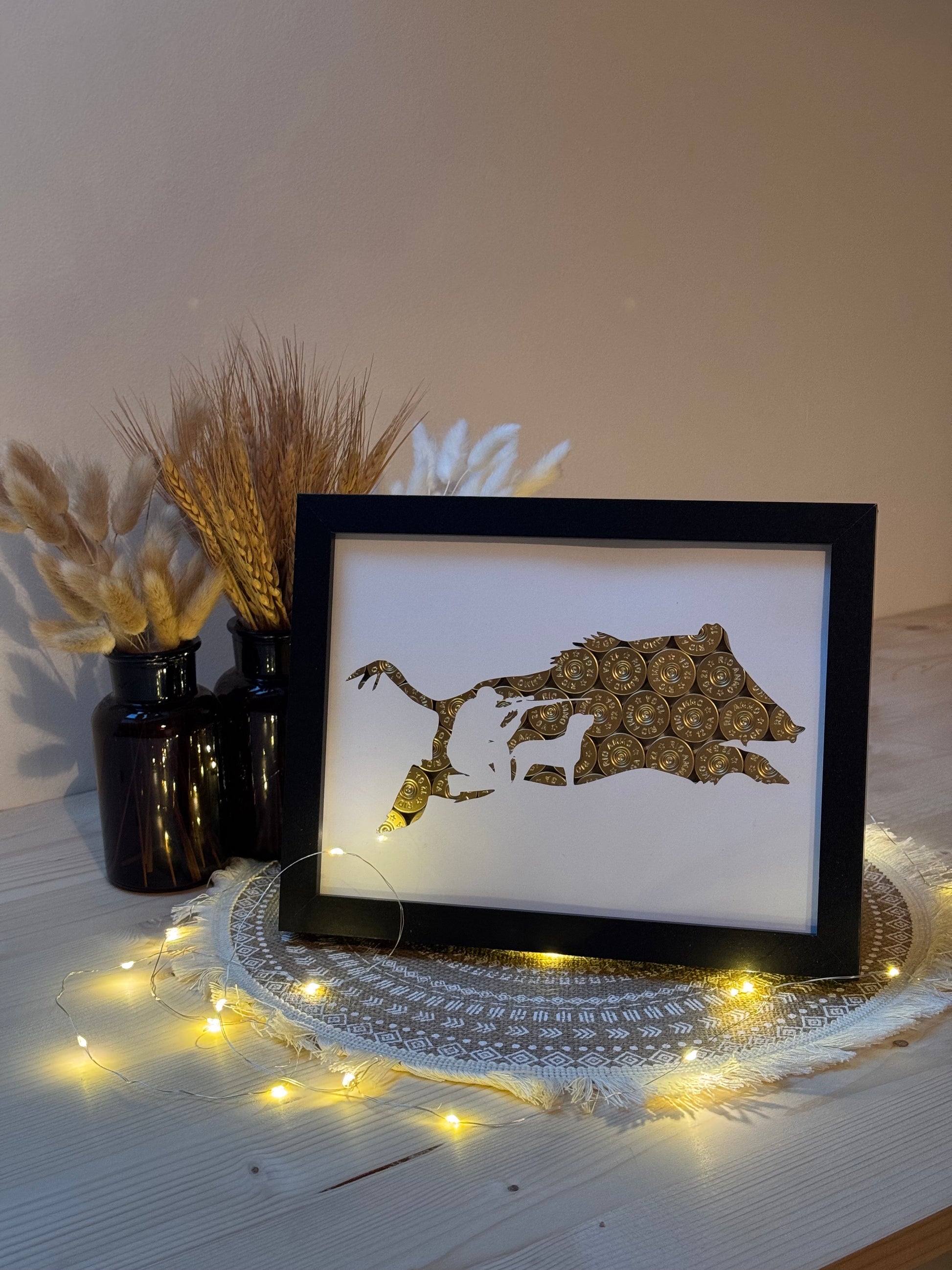 Je vous fait découvrir de magnifiques cadres fabriqués à la main par mes soins. Utilisant comme matière première des culots de cartouches de fusils. Idéale pour un magnifique cadeau ou simplement pour habiller votre intérieur de façon sobre et décalée !